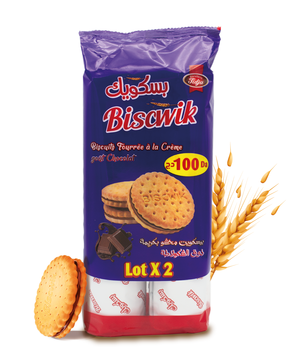 Savourez ce lot de 2 paquets de 170g de délicieux biscuits garnis d'une onctueuse crème saveur chocolat. Idéal pour accompagner vos instants de détente ou vos goûters en famille.
