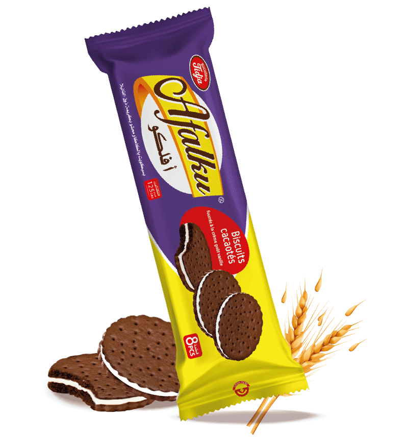 Découvrez vite Afalku, l’incontournable biscuit marron et blanc au cacao fourré à la crème goût vanille, qui plaira à toute la famille. De la gourmandise à l'état pur !