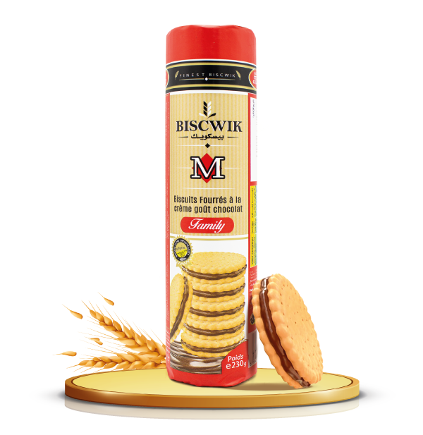 Délicatement conçu pour les moments de complicité en famille, le Biscwik M Family vous offre une expérience chocolatée inoubliable avec sa crème généreusement fourrée, pour des instants gourmands qui réunissent petits et grands autour de la table.