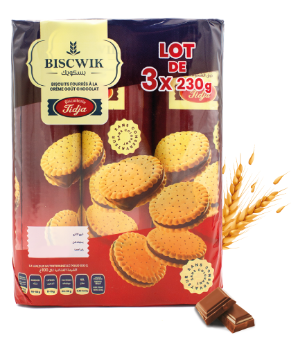 Profitez de notre lot exclusif de 3 paquets de 230g de biscuits fourrés à la crème au délicieux goût chocolat. Chaque bouchée vous offre une expérience indulgente