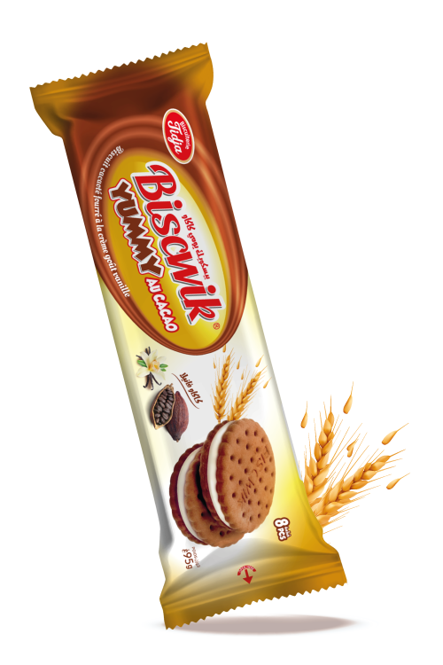 Délectez-vous avec la fusion divine de Biscwik Yummy au cacao, où la douceur de la crème vanillée rencontre l'intensité du cacao.