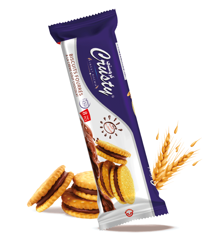 crusty, Un biscuit fourré à la crème goût chocolat, qui procure un vrai plaisir gourmand aux enfants et aux adultes !